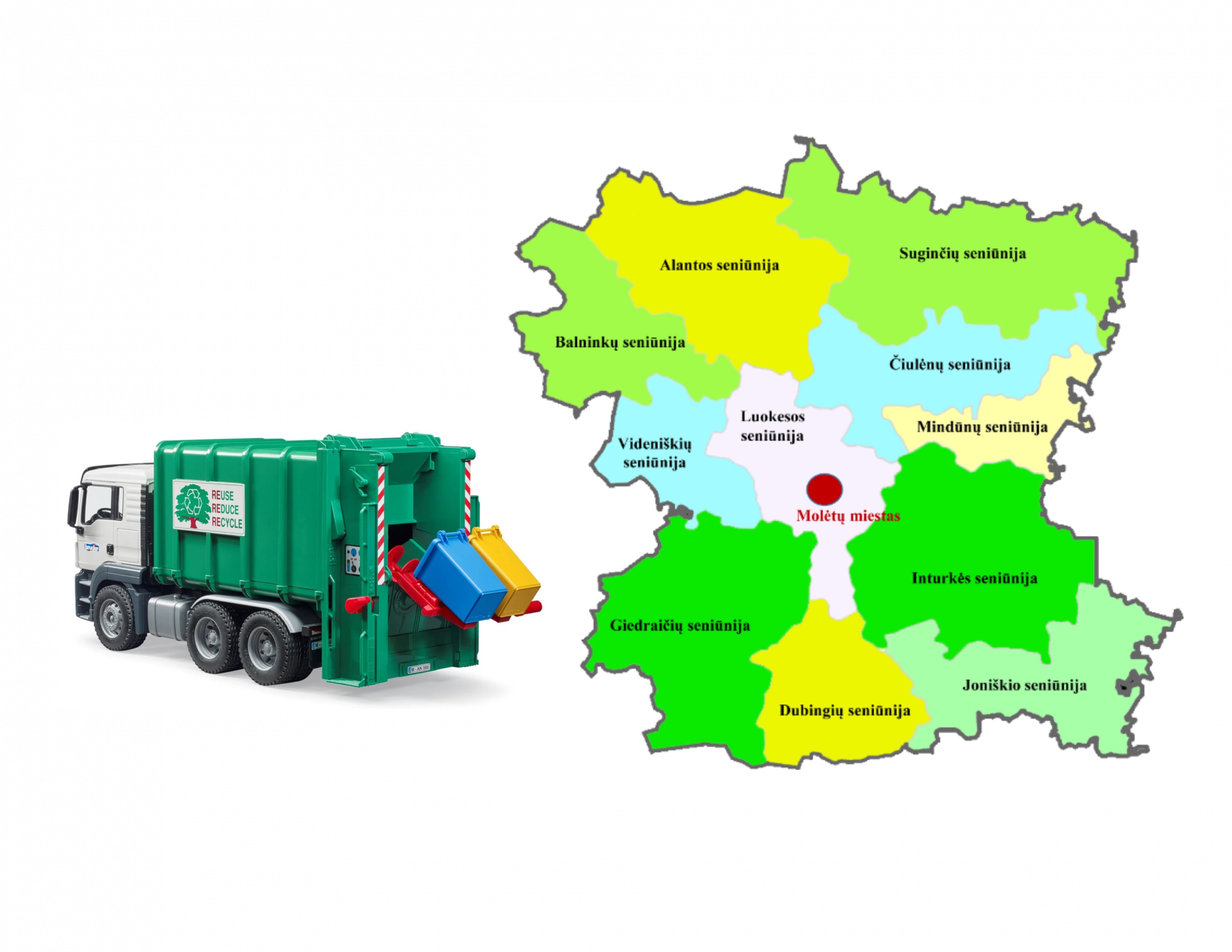 Atliekos vežamos pagal iš anksto nustatytą planą ir esminių pasikeitimų būna retai (dėl techninių nesklandumų, už kuriuos "Molėtų švara" nėra atsakinga, kartais žinutės nepasiekia adresatų, tad prašome būti budriais ir sekti informaciją mūsų internetiniame puslapyje).